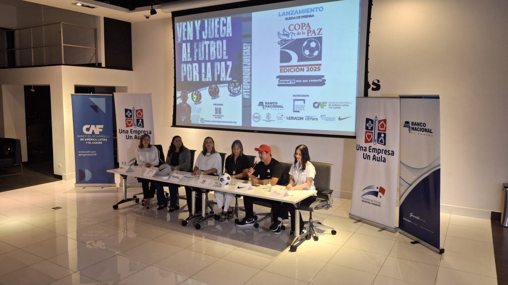 Durante la rueda de prensa se anunciaron los detalles de la Copa de la Paz y la fecha de inscripción a partir del próximo mes de enero a través del Instagram @unaempresaunaula. Se contó con la presencia de aliados de este proyecto de responsabilidad social que una vez renuevan su apoyo al mismo, tales como Pedro Boyd, Sport Marketing para Centroamérica y Colombia de Nike; Lucía Meza, Representante del Banco de Desarrollo de América Latina y el Caribe (CAF) en Panamá; Mary Carmen Fernández, Subgerente Ejecutiva de Gestión Responsable del Banco Nacional de Panamá; Melisa Velarde, Jefa de Asuntos Corporativos y Comunicaciones de MEDCOM; y Yaret Romero, Supervisora de Relaciones Públicas de la Asociación Panameña de Crédito (APC).