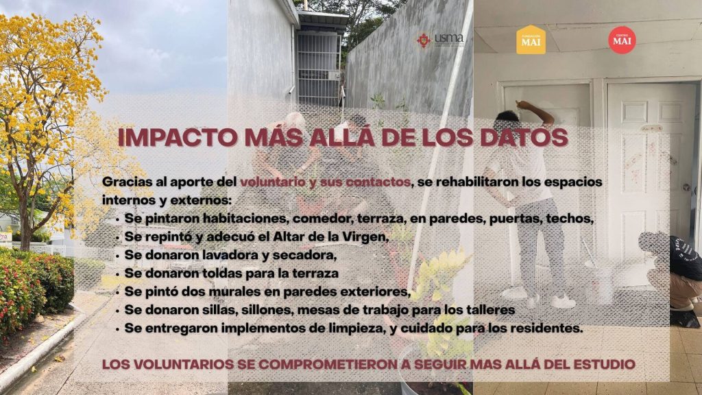 Más allá de los números, el programa abrió las puertas a la rehabilitación de espacios comunes del albergue, se crearon murales colaborativos, se realizaron donaciones de mobiliario y suministro y se fortaleció la relación entre residentes, voluntarios y cuidadores, generando bienestar y calidad de vida de quienes participaron en el programa.